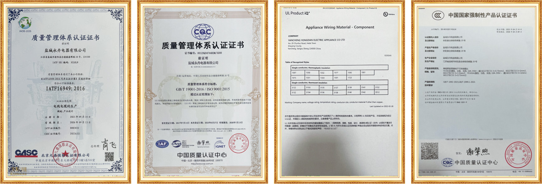 UL、3C、VDE、ISO 9001、IATF16949